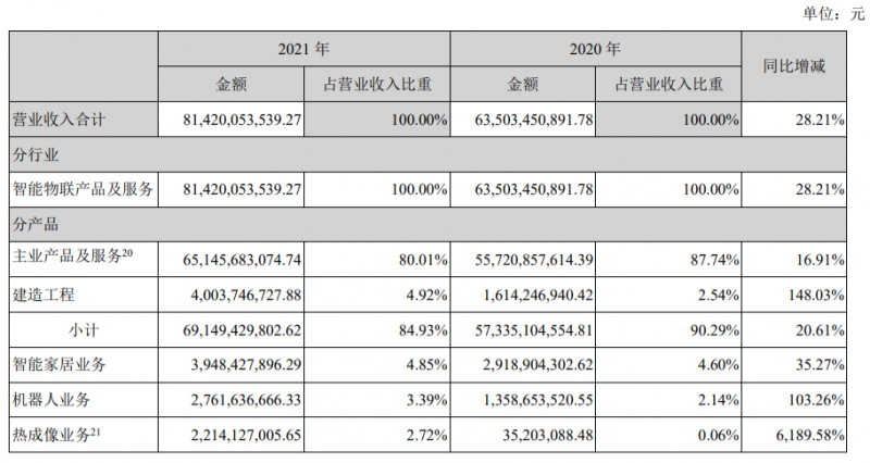 2015年以來,??低暪膭顑炔繂T工創新創業,建立內部創新跟投制度,先后成立了8個創新業務。2021年,有5個創新業務的收入超過10億、凈利潤為正。其中,公司智能家居業務營收達到了39億元,同比增長35.27%、機器人業務營收達到了27億元,同比增長103%、熱成像業務營收達到22億元、同比增長6189.58%。年報顯示,螢石網絡已經遞交IPO申請;??禉C器人擬分拆上市,相關籌備工作正在推進中。