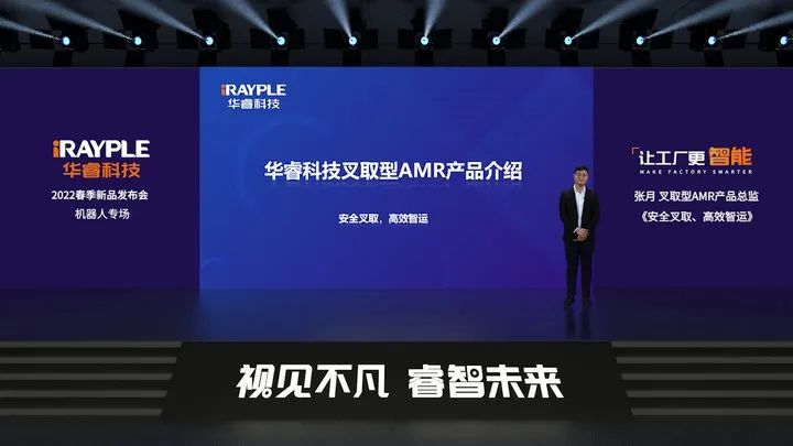 華睿科技叉取型AMR產(chǎn)品總監(jiān)張月在本次發(fā)布會上帶來了“安全叉取,高效智運”為主題的新產(chǎn)品介紹。他表示“隨著叉車無人化率的不斷提升,托盤和物料的無人化轉運場景越來越多樣化。為了更好的適應場景多樣化,提高倉庫容積率和運行安全。全新推出的窄通道堆高式叉取AMR,在取貨通道,安全防護,智能感知等方面全面升級。成熟應用于鋰電、包裝、3C等行業(yè)的物料搬運及堆高場景。在安全性,穩(wěn)定性,高效率等方面得到了多場景的驗證。”