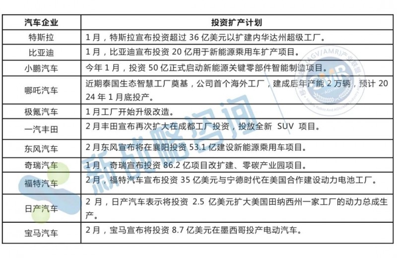 2023年2月,我國汽車市場迎來開門紅,新能源汽車勢頭較猛,全球范圍內(nèi)電車需求增長,不少汽車企業(yè)紛紛宣布擴產(chǎn)計劃,同時,對AGV設(shè)備的需求也隨之上升