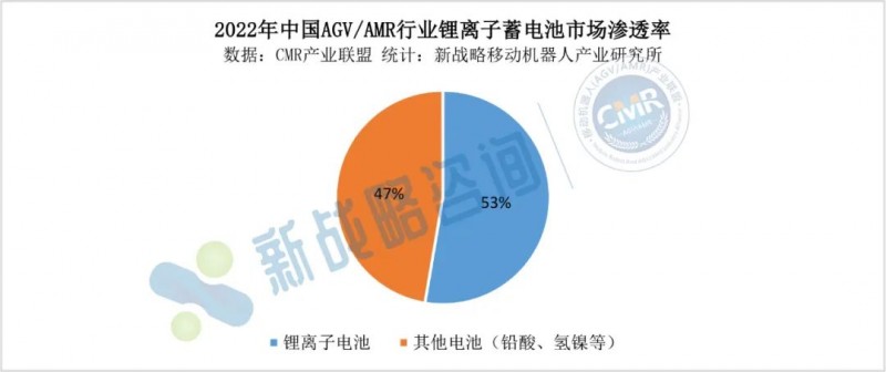 從市場(chǎng)滲透率來看,2022年,在AGV/AMR行業(yè),鋰離子蓄電池的市場(chǎng)滲透率超過50%,已經(jīng)成為行業(yè)應(yīng)用的主流。
