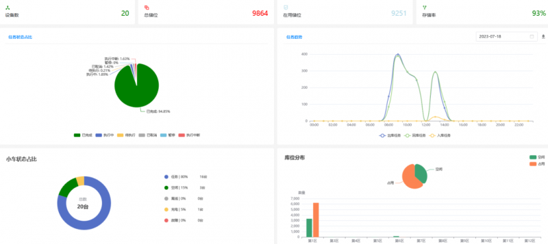 直觀易用的界面讓用戶能夠?qū)崟r(shí)監(jiān)控機(jī)器人的運(yùn)行狀態(tài)、任務(wù)執(zhí)行情況和異常處理情況等重要信息。通過可視化界面,用戶可清晰地了解每臺機(jī)器人的當(dāng)前位置、速度、電量及任務(wù)執(zhí)行情況等關(guān)鍵指標(biāo)。