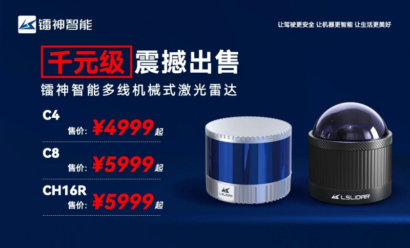鐳神智能多線機械式激光雷達C4、C8和CH16R,產品主打高性能,價格降至“千元級”,讓客戶真正體驗到激光雷達的價值與作用,我們期待有更多客戶選擇鐳神智能激光雷達進行智能空間感知場景的開發與落地應用。