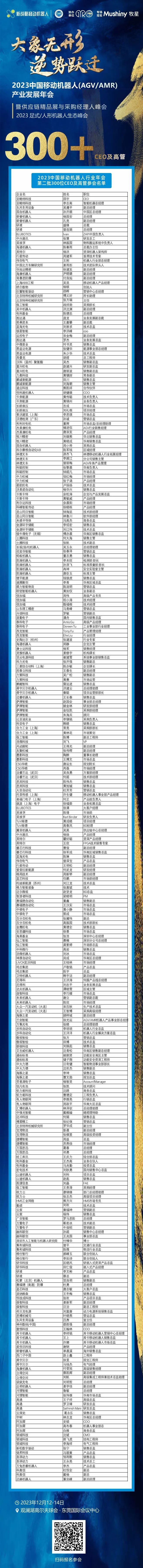 2023中國移動機器人行業(yè)年會第二批300+CEO及高管參會名單