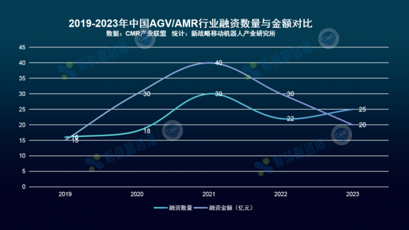 圖表:2019-2023年中國AGV/AMR行業(yè)融資數(shù)量與金額對比