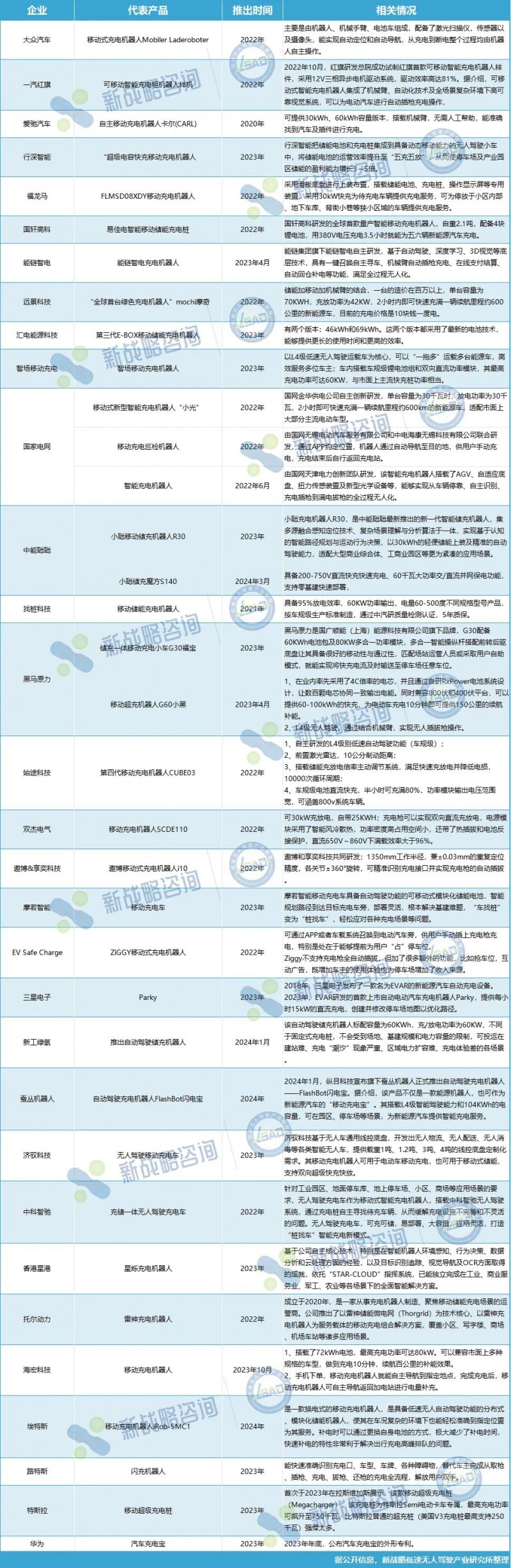 國(guó)內(nèi)部分移動(dòng)充電機(jī)器人企業(yè)及產(chǎn)品相關(guān)情況
