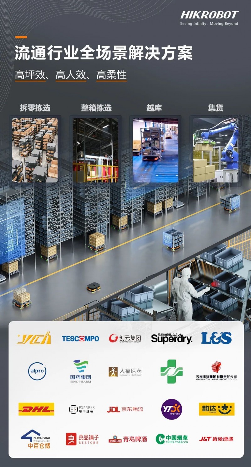 針對流通行業(yè)的業(yè)務(wù)波動量大、效率要求高、業(yè)務(wù)容錯率低、庫容要求高等核心難題,結(jié)合豐富的產(chǎn)品線和解決方案、智能算法等全場景規(guī)劃能力,海康機(jī)器人為行業(yè)伙伴打造了高坪效、高人效、高柔性的解決方案,覆蓋電商零售、鞋服、煙草酒水、商超、圖書出版、3PL、醫(yī)藥等細(xì)分行業(yè)。