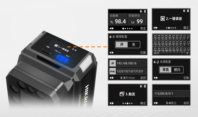 新增OLED顯示屏,通過與按鍵聯動,無需PC即可實現確認主機信息、讀碼狀態實時查看、讀碼器參數輕松設定和快速復制等功能。