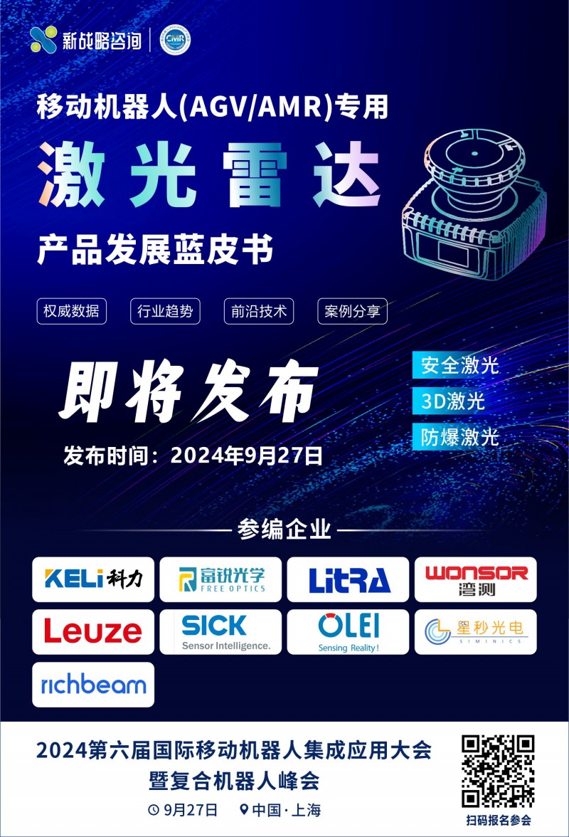 為了探析激光雷達在移動機器人領域的應用現在及趨勢,9月27日,由CMR產業聯盟主編,科力光電、富銳光學、力策科技、勞易測、歐鐳激光、西克、星秒光電、銳馳智光、灣測技術等企業聯合參與的《移動機器人(AGV/AMR)專用激光雷達產品發展藍皮書》將在“第6屆國際移動機器人集成應用大會暨復合機器人峰會”上正式發布,敬請期待!