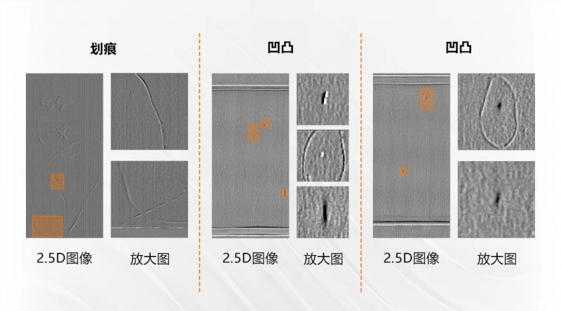 檢測效果:去除覆膜表面顏色和反光影響,有效檢出微小缺陷,對有無高度變化的缺陷進行區分