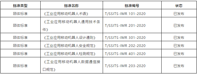 圖表:移動機器人產業聯盟制定的6項團體標準(標準索取電話:18503004176)