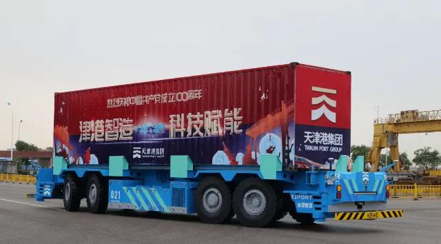 6月,天津港集團創新研發、生產制造的首臺人工智能運輸機器人正式下線,投入天津港C段智能化集裝箱碼頭進行測試。該產品配備了一套智能可視化管理系統;采用4軸8輪底盤系統,實現全輪驅動和轉向;總重量僅23噸,載重65噸,最高速度35千米/小時,可裝載20尺、雙20尺、40尺、45尺標準集裝箱。