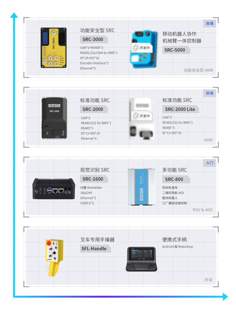核心提示:SRC 系列核心控制器是為移動機器人(AGV、AMR、自動叉車等)設計的通用控制器,為移動機器人提供地圖構建、定位導航、模型編輯等核心功能。