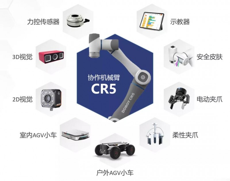 作為計劃的一部分,越疆推出了展翅、凌云1.0、凌云2.0三大套件組合,套件包括CR5協(xié)作機器人、示教器、安全皮膚、2D和3D視覺,柔性夾爪、電動夾爪、力傳感器、戶外/室內GV小車等基礎單元,適配工業(yè)、商業(yè)、醫(yī)療、農(nóng)業(yè)等多種場景應用創(chuàng)新方案的搭建。