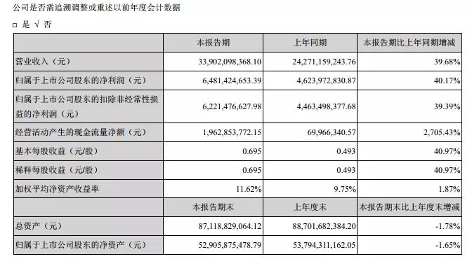 7月24日,海康威視發(fā)布2021年半年度報告。在報告中顯示:報告期內,公司實現營業(yè)總收入339.02億元,比上年同期增長39.68%;實現歸屬于上市公司股東的凈利潤64.81億元,比上年同期增長40.17%。公司2021年上半年整體毛利率為46.30%。