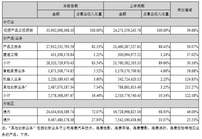 報告中主要營業(yè)收入組成如下,創(chuàng)新業(yè)務和機器人業(yè)務增長迅速,表現非凡。其中,海康機器人實現營收12.2億,同比增長124.83%。