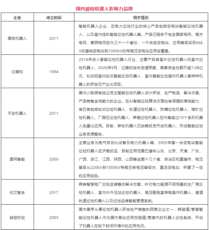 市場(chǎng)空間的廣闊吸引了更多的入局者,近年來,越來越多的機(jī)器人制造廠商投入到變電站巡檢機(jī)器人的設(shè)計(jì)、研發(fā)和銷售,據(jù)統(tǒng)計(jì),目前國內(nèi)已有25家左右具有一定規(guī)模的巡檢機(jī)器人制造廠商,并已研制出適應(yīng)于不同環(huán)境條件的巡檢機(jī)器人。以下盤點(diǎn)了當(dāng)前國內(nèi)巡檢機(jī)器人市場(chǎng)一些影響力品牌,供大家參考!