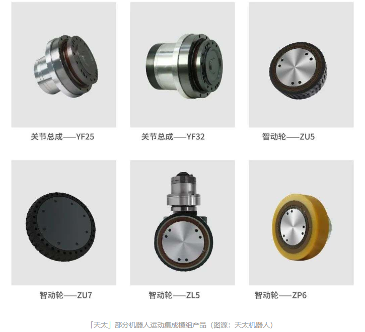 天太機(jī)器人還深度整合多個(gè)機(jī)器人關(guān)鍵運(yùn)動(dòng)模塊,幫助下游廠商提高生產(chǎn)裝備效率,改善機(jī)器人產(chǎn)品性能。例如,天太的智動(dòng)輪集成了輪子、減速機(jī)、電機(jī)與驅(qū)動(dòng)器,通過緊湊的一體化結(jié)構(gòu)實(shí)現(xiàn)性能體積比的最大化,同時(shí)也具備節(jié)能及簡便安裝等優(yōu)點(diǎn);公司研發(fā)的AGV抬升總成幫助AGV廠商在確保高負(fù)載輸出的同時(shí),縮小部件體積并且降低綜合能耗,為機(jī)器人產(chǎn)品釋放更多的設(shè)計(jì)空間。