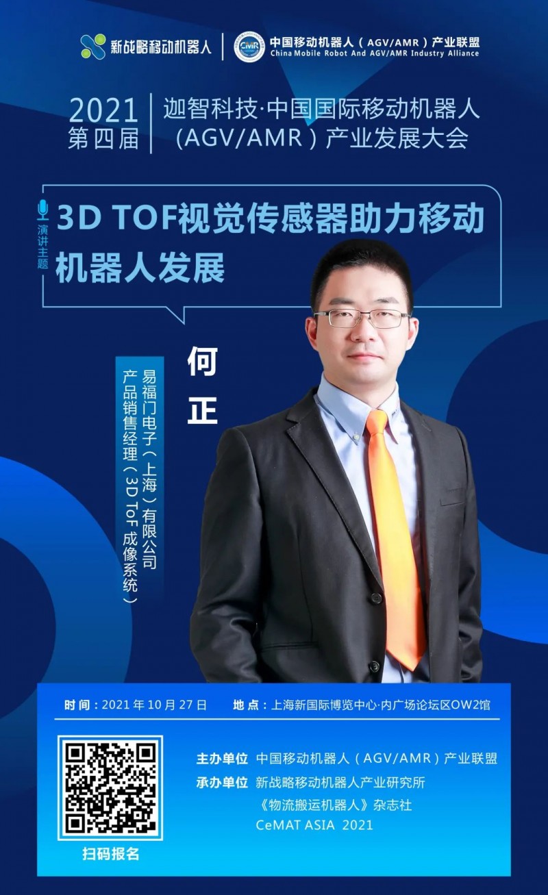 10月27日,在中國(guó)移動(dòng)機(jī)器人(AGV/AMR)產(chǎn)業(yè)聯(lián)盟主辦的《第四屆國(guó)際移動(dòng)機(jī)器人大會(huì)》上,易福門(mén)電子(上海)有限公司產(chǎn)品銷售經(jīng)理何正將帶來(lái)“機(jī)器人之眼:3D ToF相機(jī)帶來(lái)的無(wú)限可能”主題分享,敬請(qǐng)期待!