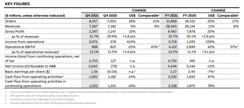 近期,ABB發(fā)布了2021年第四季度及全年業(yè)績,具體情況如下: