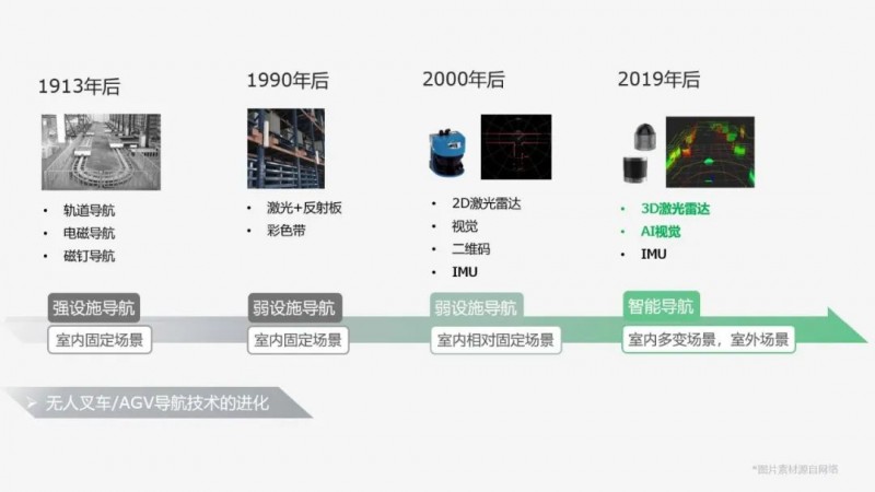 回顧無人叉車歷史,導航技術(shù)的進化無疑是行業(yè)發(fā)展最生動的注腳。