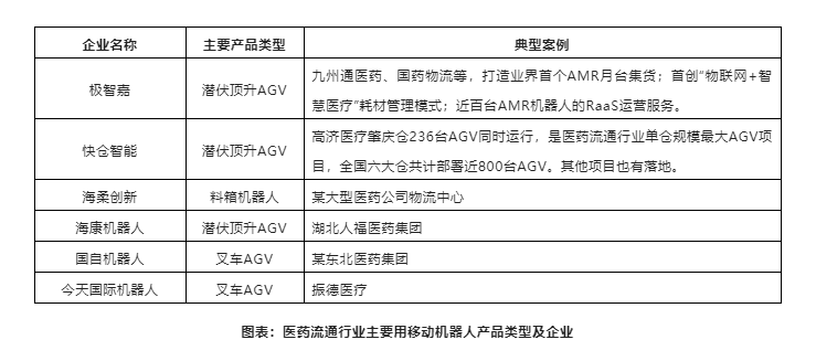 圖表:醫(yī)藥流通行業(yè)主要用移動機器人產品類型及企業(yè)